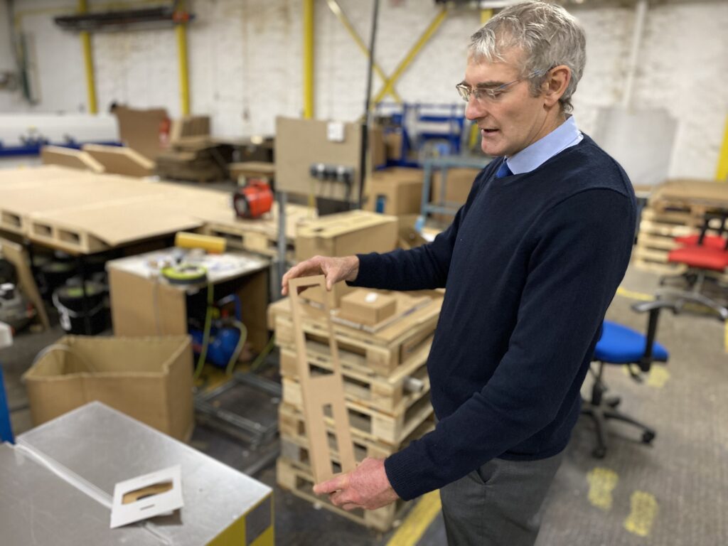 Euan told me they don’t reject customers if their order is too small. But the quote for such work would reflect the costing. For example, a cutting tool could be £200. Such a board with metal edges has an upfront cost. But it can bring the price close to 10 to 30 pence per box. Still, after tens of thousands of cutouts, the tool might need repairs.
